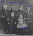 Foto viser fra venstre, bagest: Morten Jensen Dam, Søren Andersen Dam, Karen Jensen Rødgaard, Martine Marie Dam, forrest: Peter Jensen Dam, Cæcillie Hansine Dam.